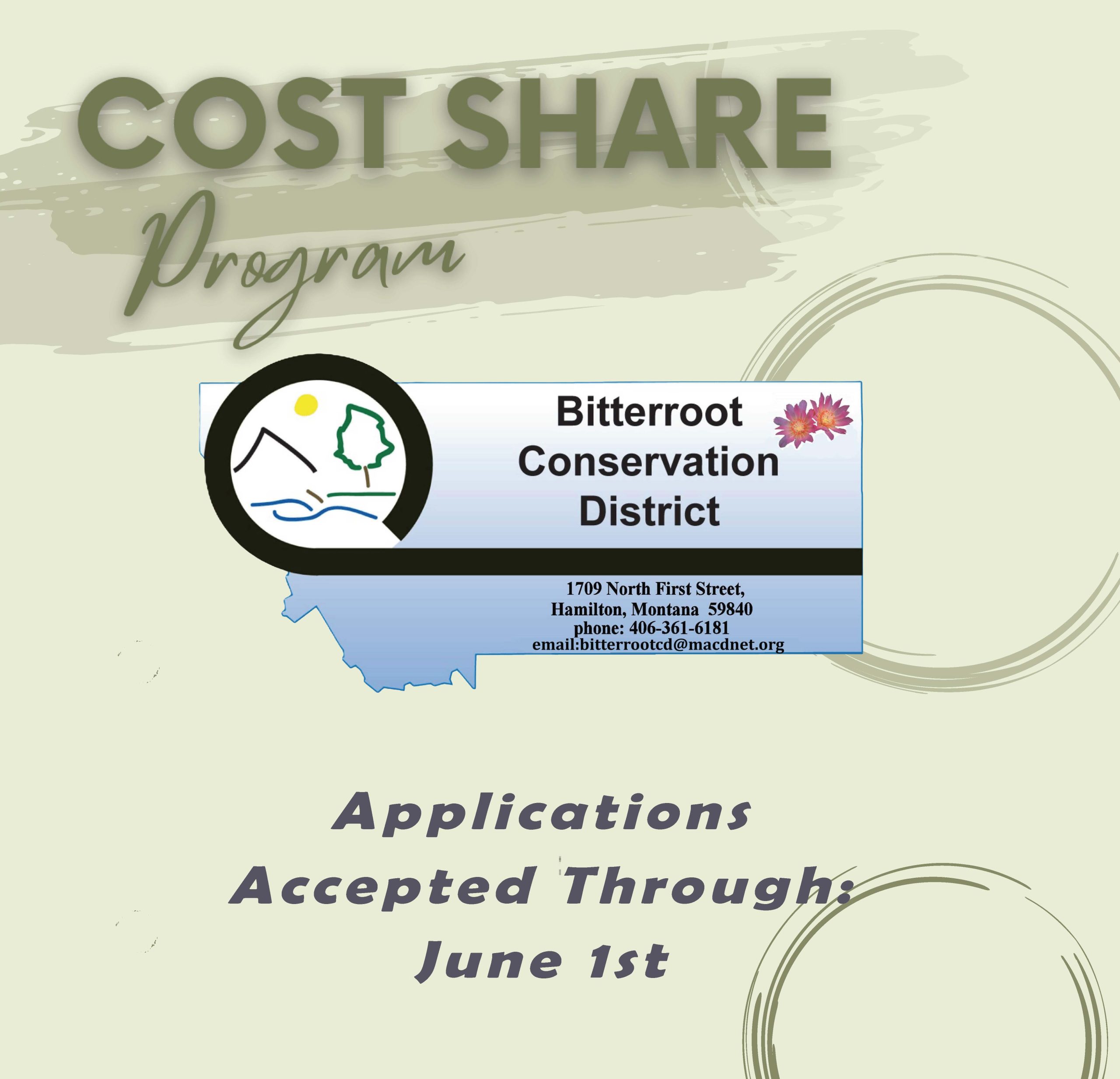 The Cost-Share program is available to any private sector landowner with property within Ravalli County. There is a limit of one project per person or group per year. All projects must be completed within one year of approval. Projects may be composed of multiple practices. Only on the ground projects are eligible. No studies or research projects will be funded.